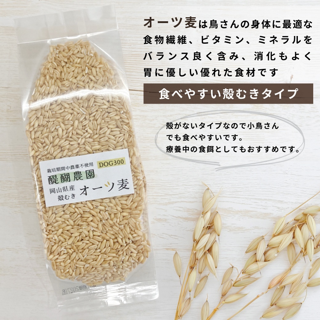 CAP! 鳥の餌 賞味期限2027/2/16※DOG300殻むきオーツ※【醍醐農園】栽培期間中農薬不使用 岡山県産 殻むきオーツ麦 300g★