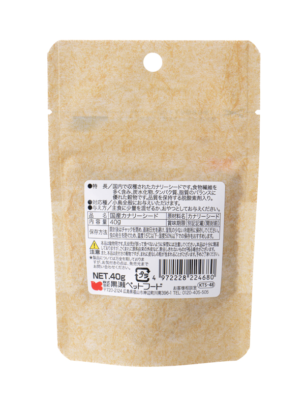 CAP! 鳥の餌 賞味期限2027/6/30【黒瀬ペットフード】KTS-48 国産 カナリーシード 40g