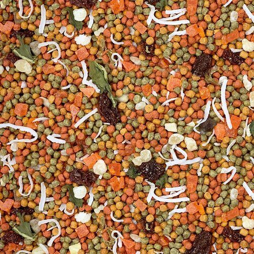 インチューンハーモニーはインチューンのペレットが本物のトリート(パイナップル、アーモンド、バナナ、ドライアプリコット、アップル、アーモンド、ウォルナッツ、カシューナッツなど)とミックスされている、健康的で栄養バランスの取れた食事です。